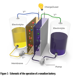 The operating principle of a vanadium redox battery differs from that of a lithium battery.