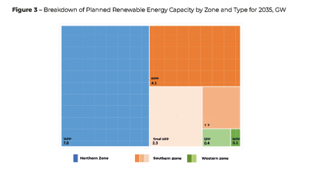 The distribution of planned renewable energy capacity by zone and type is shown in the figure below.