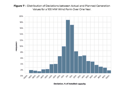 For example, an analysis of annual data on compliance with the planned hourly generation schedule for a 100 MW wind farm commissioned in 2022 showed that 90% of actual deviations from planned values fell within the range of ±60%. At the same time, international experience demonstrates the “learning curve” effect in renewable energy forecasting, meaning that forecast accuracy tends to improve over time as more data is collected.