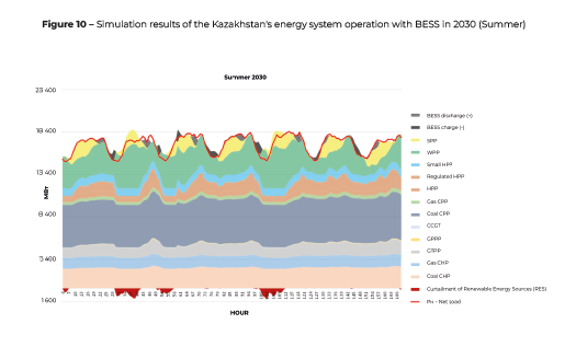 Preliminary modeling of Kazakhstan's energy system for 2030 suggests that substantial curtailment of renewable generation may be necessary to prevent electricity surpluses and ensure grid stability. BESS can help by storing excess energy and releasing it during peak demand or power shortages.