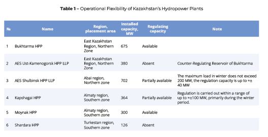 Due to their technological characteristics, GTPPs and HPPs have the best capability to rapidly adjust generation, allowing for quick ramp-up and ramp-down. However, it is important to note that in Kazakhstan, only four out of six large HPPs participate in grid regulation.
