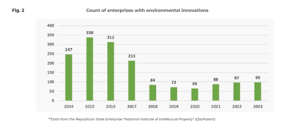 At the same time, Kazakhstan possesses significant scientific and technical potential, with 2,531 green patents and a pool of qualified specialists, yet the level of innovative activity among enterprises remains very low - around 0.3%.