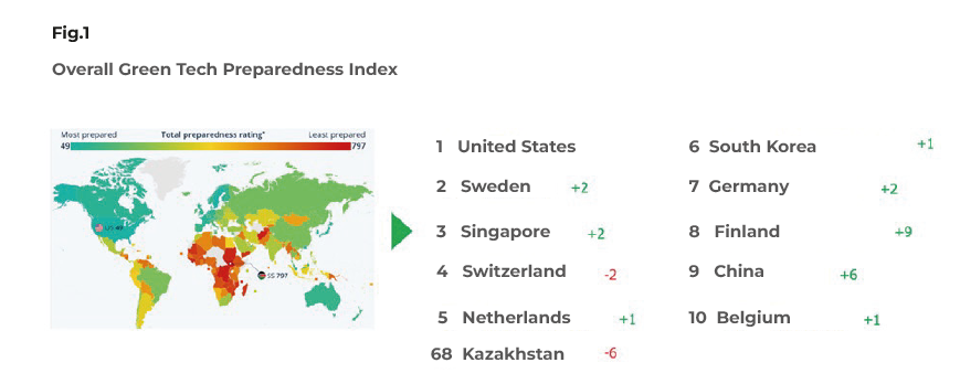 According to the UN Conference on Trade and Development (UNCTAD), the countries most prepared for the green transition are the United States, Sweden, Singapore, Switzerland and the Netherlands. Kazakhstan, by comparison, ranks 68th in terms of readiness to adopt, adapt and deploy green technologies.