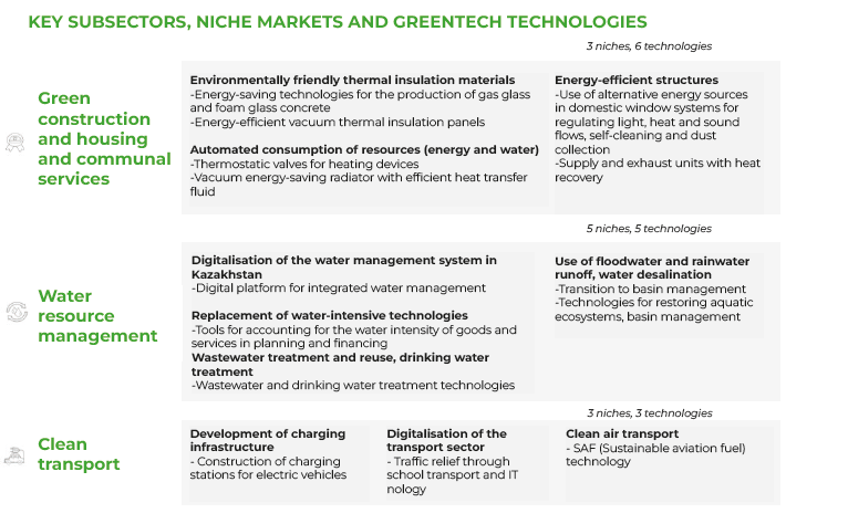 • Identification of global trends, barriers, and key challenges in the adoption of green technologies relevant to Kazakhstan.