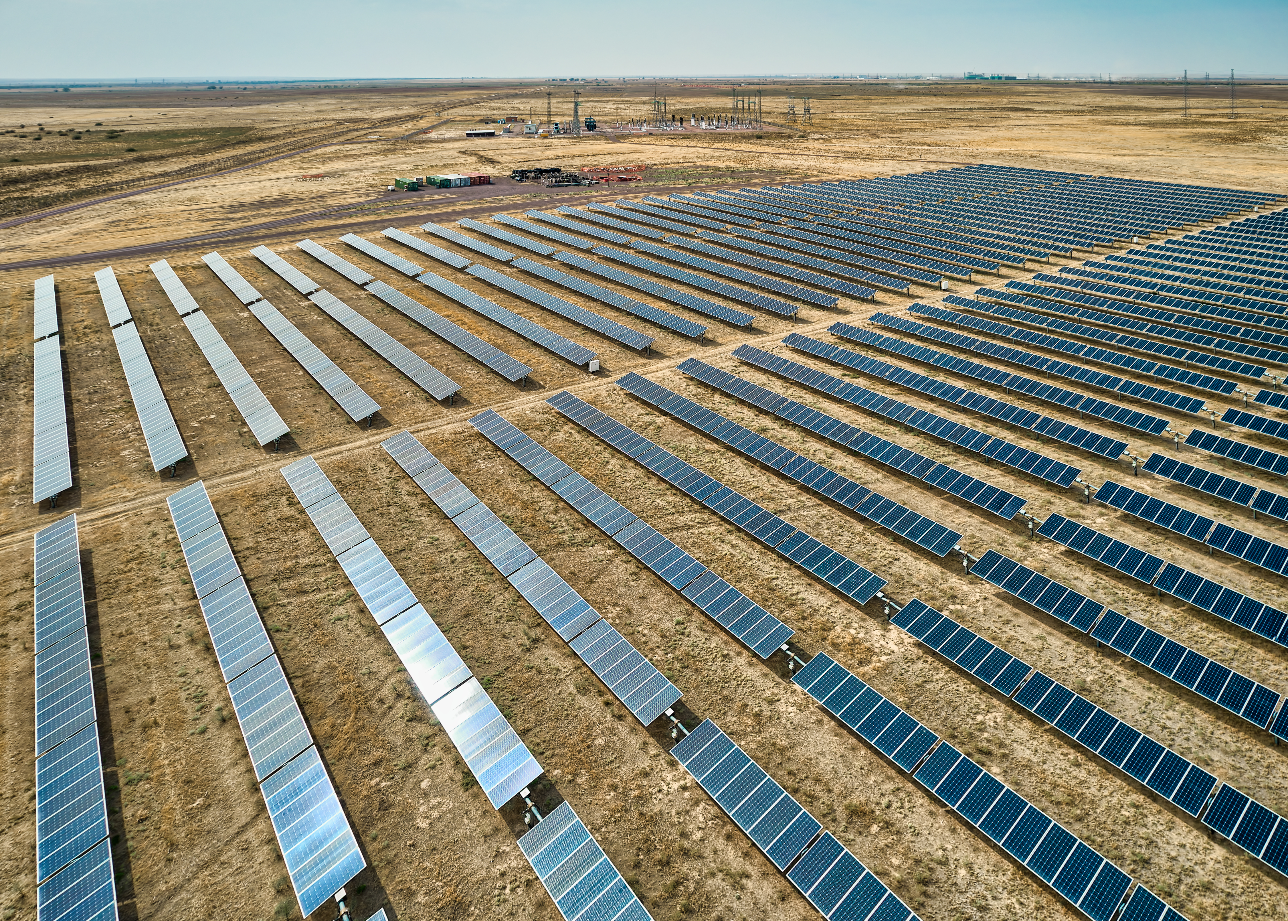 The plant operates on a standard photovoltaic principle: sunlight activates electrons in the silicon panels, generating an electric current. The direct current is converted to alternating current via inverters and transmitted to the national grid through KEGOC.