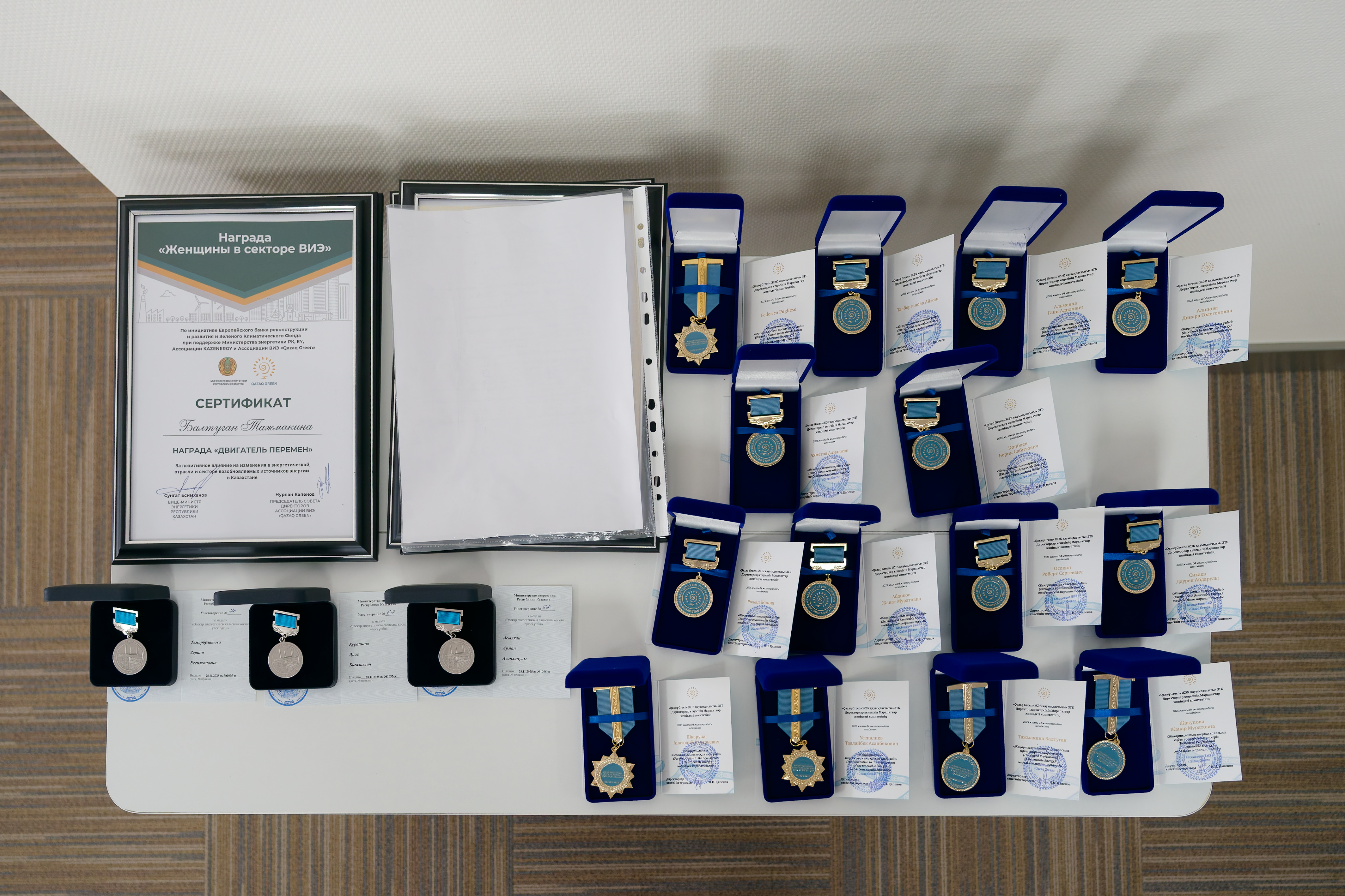 The awards celebrate meaningful contributions to the development of renewable energy, long-term commitment to the industry, professional excellence, and active involvement in building a sustainable energy future for Kazakhstan.