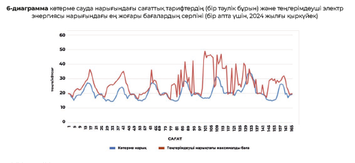 «КОРЭМ» АҚ-ның 2024 жылғы қыркүйектегі деректері бойынша теңгерімдеуші нарықтағы теңгерімсіздік үшін ең төменгі және ең жоғары баға 0,01-ден 63,21 теңге/кВтсағ аралығында, ал көтерме сауда нарығында (бір тәулік бұрын) «ҚЕАО» ЖШС деректері бойынша электр энергиясының құны әр түрлі сағатта 12,62-ден бастап 35,6 теңге/кВтсағ дейін қалыптасты. Бұл ретте көтерме сауда нарығында белгісіздік азырақ айқын баға трендтері байқалады, ал теңгерімдеуші нарықта жоғары белгісіздікпен жоғары құбылмалылық байқалады.