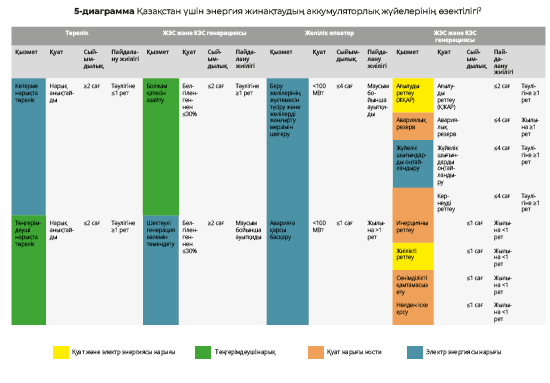 Оң техникалық-экономикалық негіздеме болған жағдайда, Қазақстанда BESS жүйелерін жеке бизнес (төрелік) ретінде де, басқа технологиялармен (ЖЭК генерациясы, жүйелік қызметтер және т.б.) ұштастыра отырып қолдануға болады.