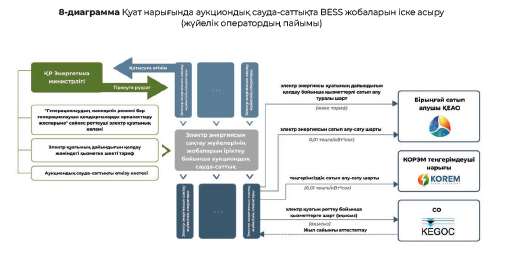 Жүйелік оператор BESS жобаларын қуат нарығындағы аукциондық сауда-саттық және/немесе көтерме (бір тәулік бұрын) немесе теңгерімдеуші электр энергиясы нарықтарындағы төрелік арқылы іске асыруды ұсынады.