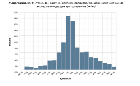 Осылайша, 2022 жылы енгізілген 100 МВт ЖЭС-тен біреуі үшін жоспарланатын сағаттық генерация кестесін сақтаудың жылдық деректерін талдау нақты мәндердің жоспарланғаннан ауытқуының 90% ±60% диапазонында екенін көрсетті. Бұл ретте халықаралық тәжірибе көрсеткендей, ЖЭК өндірісін болжауда «оқу қисығының» әсері байқалады, яғни, әдетте, болжам сапасы уақыт өте келе және жиналған деректер массивінің ұлғаюымен жақсарады.
