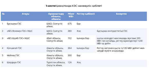 Қолда бар технологиялық ерекшеліктерге байланысты газ турбиналы электр станциялары (ГТЭС) және гидроэлектрстанциялар (ГЭС) тез жүктеуді және жүктемені азайтуды қамтамасыз ете отырып, генерацияны жедел өзгерту қабілетіне ие. Бұл ретте Қазақстанда алты ірі ГЭС-тің тек төртеуі ғана реттеуге қатысатынын атап өткен жөн.