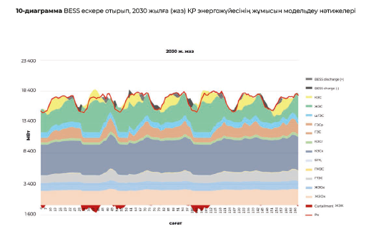 Қазақстанның энергия жүйесі жұмысының перспективалық режимдерін алдын ала модельдеу 2030 жылдың деңгейінде электр энергиясының артық мөлшерін азайту және энергия жүйесін теңгерімдеу мақсатында ЖЭК генерациясының елеулі шектеулері байқалатынын көрсетеді. BESS жүйелері кейіннен қуат тапшылығы кезінде нарыққа шығара отырып, артық электр энергиясын жинақтау үшін пайдаланылуы мүмкін.