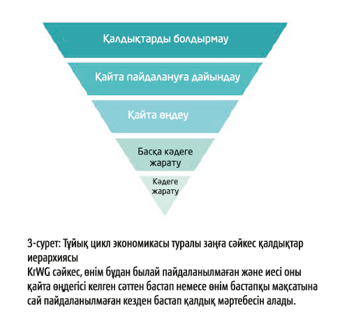 6-параграфта KrWG қалдықтардың бес деңгейлі иерархиясын анықтайды, ол қайта өңдеуден бұрын қалпына келтірудің негізгі қағидатын ұстанады және қалдықтармен жұмыс істеу тәртібін анықтайды (3-сурет).