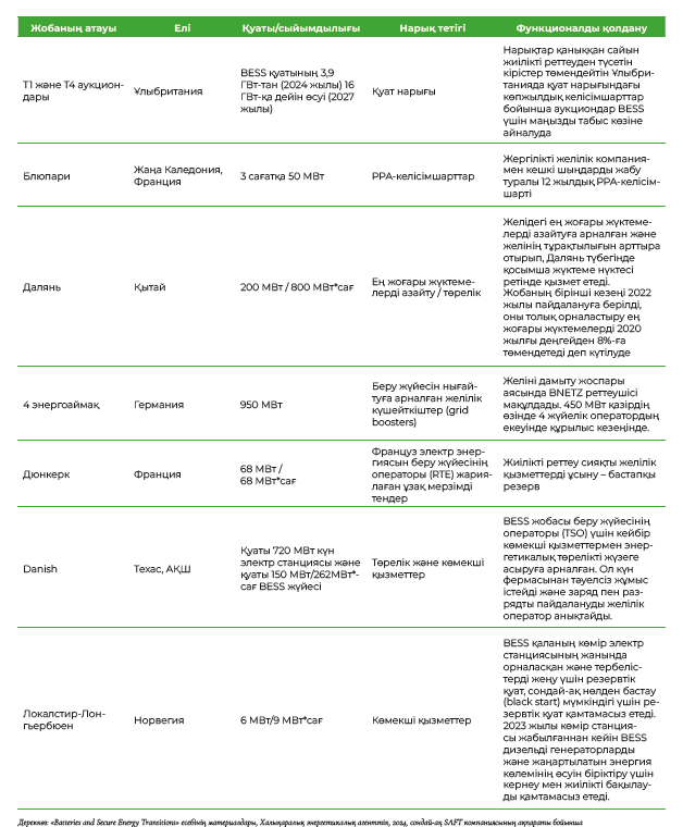 Энергияны сақтау жүйелерін дамыту (BESS): халықаралық тәжірибе