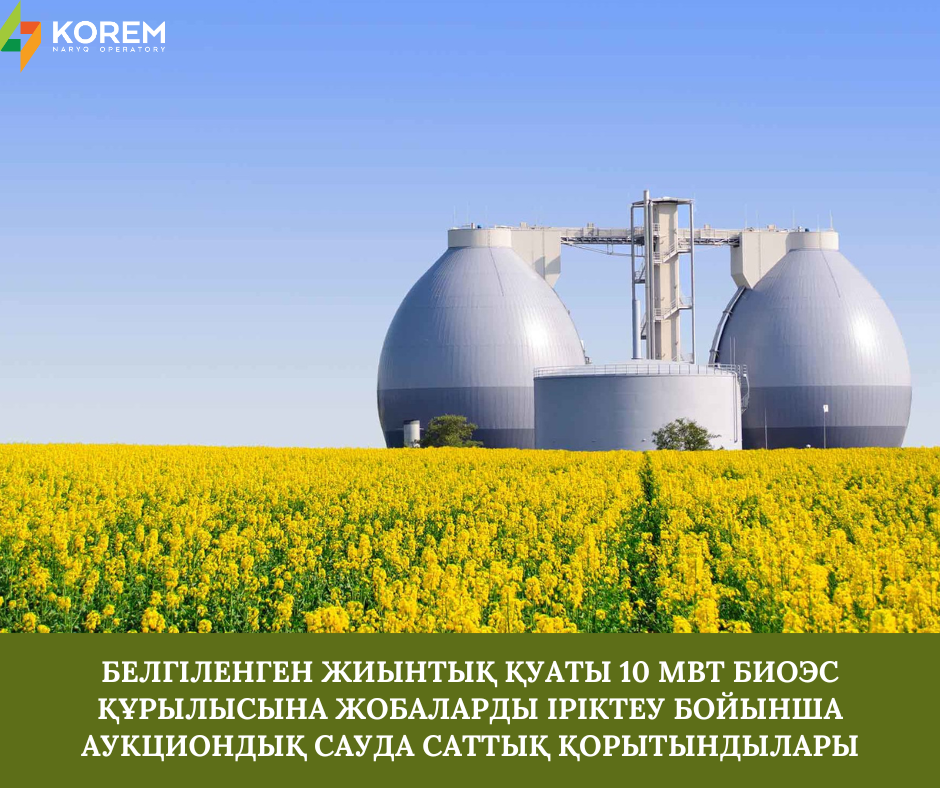 QAZAQ GREEN. 2023 жылғы 30 қарашада өткен жиынтық белгіленген қуаты 10 МВт БиоЭС құрылысына жобаларды іріктеу бойынша аукцион өткізілмеді деп танылды.