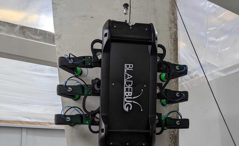 BladeBUG алты аяқты өрмелейтін роботы турбиналық қалақтарды тексеріп, олар арқылы өтіп - қазіргі уақытта техник-адамдардан қауіпті жағдайларда әсер етуді талап ететін міндетті шешіп, оны жөндейді.